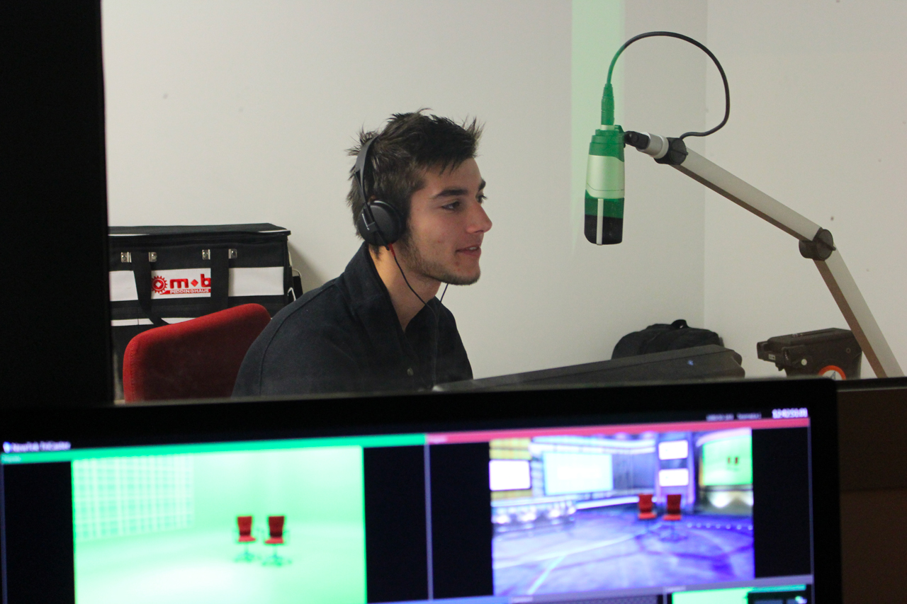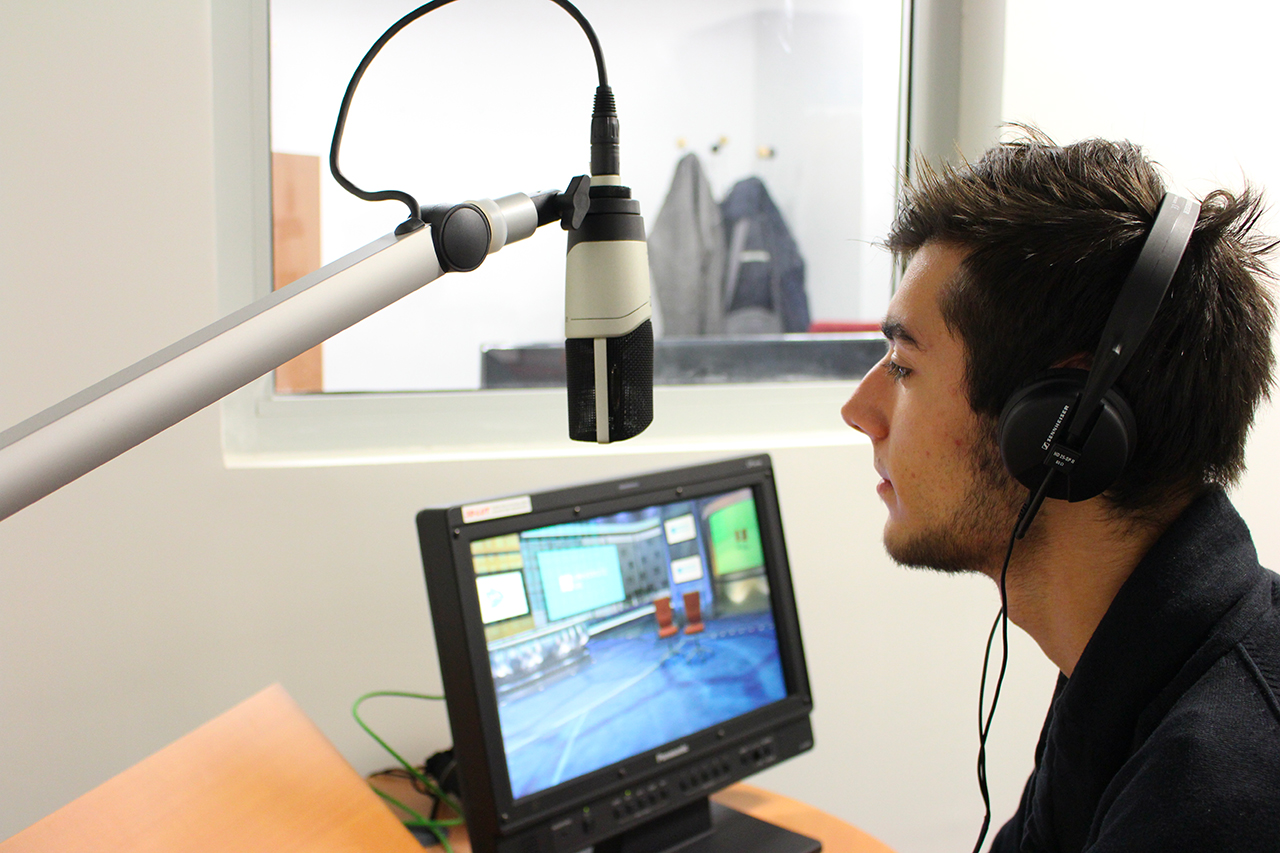 La cabine speak permet de réaliser des enregistrements audio de qualité grâce à son traitement acoustique et à un micro à condensateur à large membrane (MK4). Le retour vidéo permet le doublage son des programmes régie ou du direct. Elle est liée à la “cabine protools” par une connectique spécifique audio et intercom.