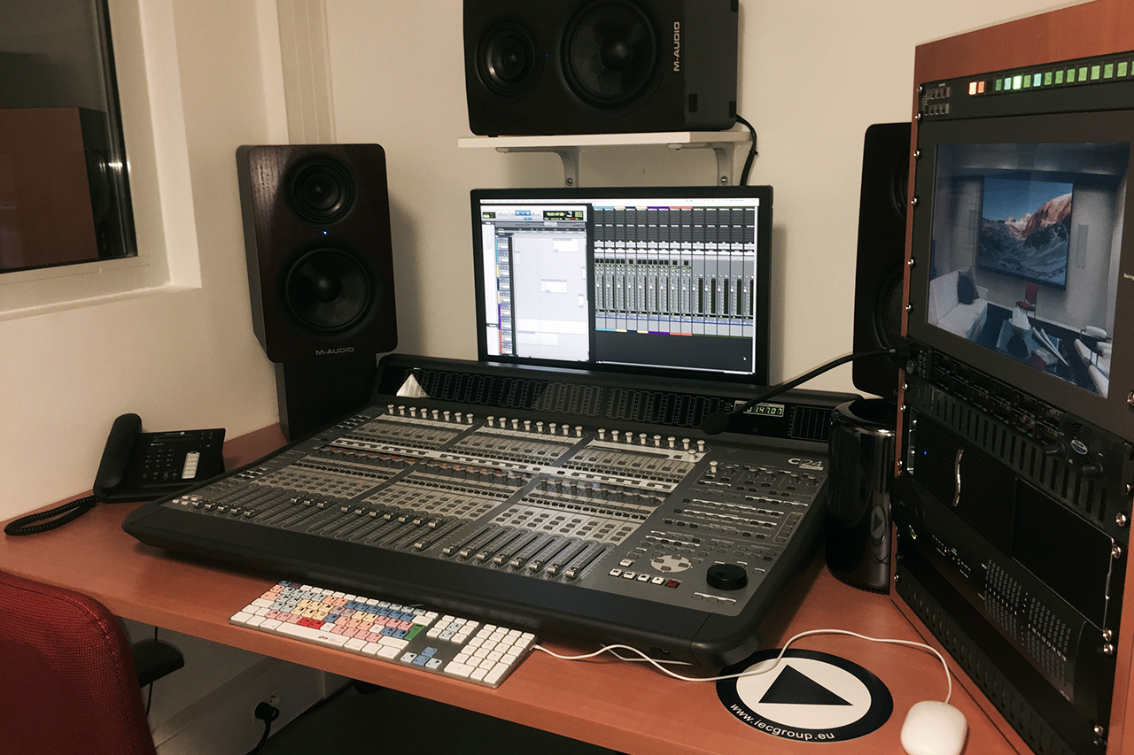 La salle de post-production audio est équipée du logiciel Pro Tools | HD. Elle permet de composer, enregistrer, éditer et mixer rapidement et simplement les plus grosses productions pour les projets exigeant un niveau de qualité et de performances. Elle est installée avec une surface de contrôle C24 de Digidesign et d’une interface Avid HD Omni.